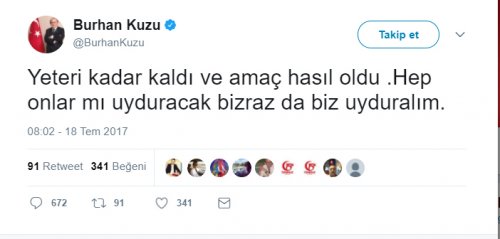 Tepkiler üzerine paylaşımını kaldıran Kuzu, kendini "Yeteri kadar kaldı ve amaç hasıl oldu. Hep onlar mı uyduracak biraz da biz uyduralım" sözleriyle savundu.