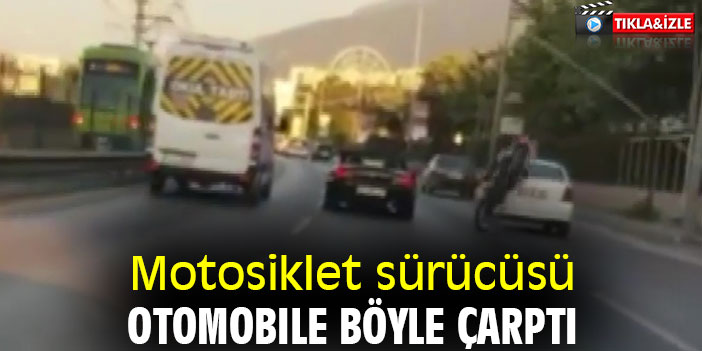 Motosiklet sürücüsü otomobile böyle çarptı