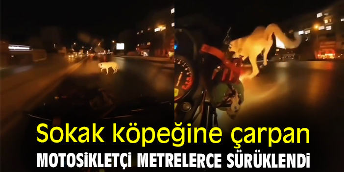 Sokak köpeğine çarpan motosikletçi metrelerce sürüklendi