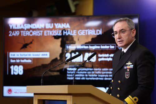 Bakanlıkta gerçekleştirilen basın toplantısında konuşan Milli Savunma Bakanlığı Basın Halkla İlişkiler Müşaviri Tuğamiral Zeki Aktürk, gündeme dair son gelişmeleri aktardı. Türk Silahlı Kuvvetleri’nin terörü kaynağında yok etme anlayışıyla kesintisiz bir şekilde ve kararlılıkla sürdürdüğü operasyonlara dikkati çeken Tuğamiral Aktürk, “Irak ve Suriye’nin kuzeyi dâhil son bir haftada 198, 1 Ocak’tan bugüne kadar ise 2 bin 419 (Irak bin 256/Suriye bin 163) teröristi etkisiz hâle getirmiştir” ifadelerini kullandı.