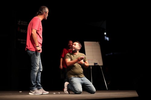 Aliağa Sanat Günleri’nde tiyatro şöleni, Türkiye’de modern doğaçlama tiyatronun öncüsü olan Mahşer-i Cümbüş ile devam etti. Yiğit Arı, Burak Satıbol, Özlem Türay, Ayça Işıldar Ak ve Güray Özcan’ın yer aldığı Mahşer-i Cümbüş ekibi, Ulaş Bayam Açıkhava Tiyatrosu’nu dolduran Aliağalılara kahkaha dolu bir gece yaşattı. Aliağa Belediye Başkanı Serkan Acar, yaklaşık iki saat süren doğaçlama gösterisini tiyatroseverlerle birlikte izledi. Sevilen tiyatrocular interaktif oyunları ve enerji dolu sahne performanslarıyla oyunun sonunda ayakta alkışlandı.