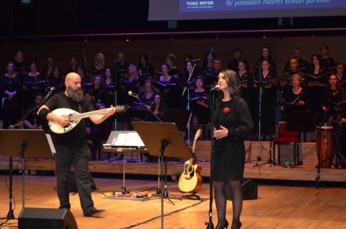 Evet Sayın Zafer başkandan alıntı yaptığım bu özel koroya bende katıldım... Sahilevlerinde bir mekanda toplantı halindeydim... Sevgili Sanatçı dostum Ferit Tükkan ve Güven Kavur kardeşim konserde olduklarını söylediler... Saatime baktım... Yetişebilirim dedim... fırladım. Tam zamanında orada oldum... Yerimizi aldık... Salon tıklım tıklımdı... Zafer Yusuf Güzelkasap'ı konuşması için sahneye aldılar.... Kısa ve öz konuştu.Öyle ki koroyu daha bir bilinçli dinledim ve izledim... Sunum ve açılışı güzel diksiyonu ve duruşu ile Gökçe Bilgesu Akkuş yaptı.
