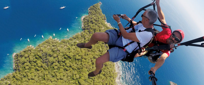 Eşinin küllerini yamaç paraşütüyle denize savurdu