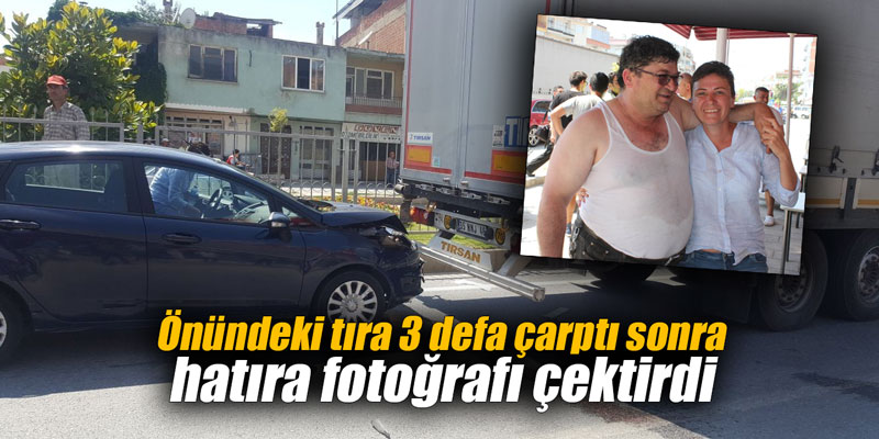 Önündeki tıra 3 defa çarptı sonra hatıra fotoğrafı çektirdi