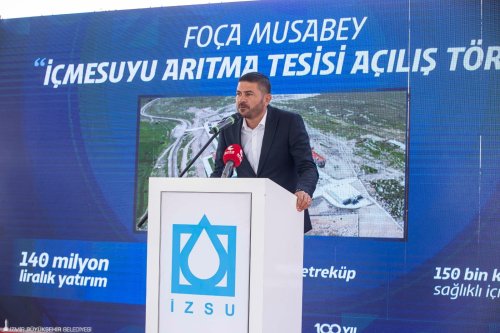 Büyükşehir Belediye Başkanı Tunç Soyer'in Nisan ayında “Cumhuriyetimizin 100. Yılında İZSU’dan 100 Proje” başlığıyla duyurduğu yatırımlardan biri daha tamamlandı. Foça’da 140 milyon liralık yatırımla tamamlanan Musabey İçme Suyu Arıtma Tesisi törenle hizmete alındı. 150 bin kişiye içme suyu sağlayacak, yıllık 11 milyon metreküp arıtma kapasitesine sahip tesisin açılış törenine İzmir Büyükşehir Belediye Başkanı Tunç Soyer, CHP İzmir Milletvekili Murat Bakan, Konak Belediye Başkanı Abdül Batur, Foça Belediye Başkanı Fatih Gürbüz, Karaburun Belediye Başkanı İlkay Girgin Erdoğan, Balçova Belediye Başkanı Fatma Çalkaya, Gaziemir Belediye Başkanı Halil Arda, İZSU Genel Müdürü Ali Hıdır Köseoğlu, Mareşal Fevzi Çakmak Mahallesi Muhtarı İbrahim Dereli, sivil toplum örgütleri temsilcileri ve yurttaşlar katıldı. 51 bin metrekare alana sahip tesiste ayrıca 4 daireden oluşan bir lojman da görev yapacak personelin hizmetine sunuldu.