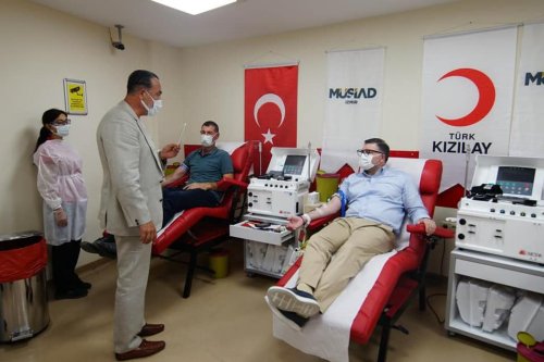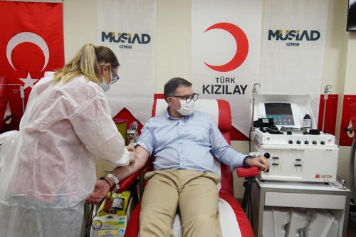 Müstakil Sanayici ve İşadamları Derneği (MÜSİAD) İzmir Şubesi üyeleri, pandemi ve yaz dönemi nedeniyle kan stoklarının kritik seviyeye yaklaştığı dönemde kan bağışına dikkat çekmek ve destek olmak için etkinlik gerçekleştirerek kan bağışında bulundular.