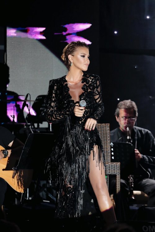 Her zamanki şıklığı ve enerjisiyle izleyenlere eğlenceli saatler yaşatan ünlü sanatçı, Tolga Çam imzalı kıyafeti ile de çok beğenildi.
