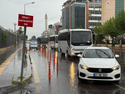 Tutuklu sanıklar, Diyarbakır Ceza İnfaz Kurumları Kampüsü'nden cezaevi nakil araçlarıyla geniş güvenlik önlemi alınarak Diyarbakır Adliyesi'ne getirildi.