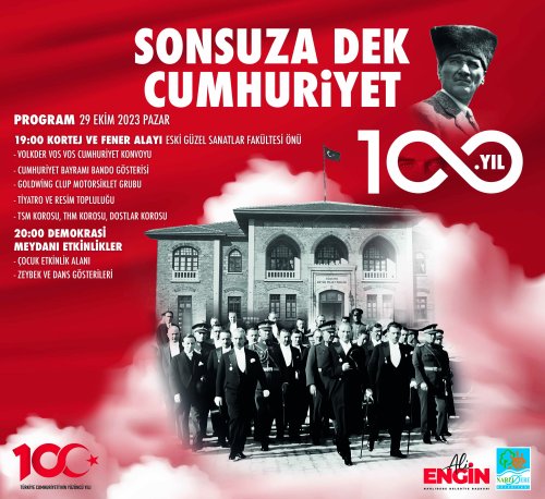 Bu sene Cumhuriyetin ikinci yüzyılının başladığını ifade eden Başkan Engin, “Egemenlik kayıtsız şartsız milletindir anlayışıyla taçlanan Cumhuriyetimize çok şey borçluyuz. Biz, her sene olduğu gibi bu sene de Narlıdere’mizden ülkemizin aydınlık yarınlarına umut saçmaya devam edeceğiz. Bundan 100 yıl önce büyük emek ve fedakârlıklarla kurulan, küllerinden doğan şanlı Cumhuriyetimize sonsuza kadar sahip çıkacağımızın sözünü veriyoruz. Sonsuza dek yanacak Cumhuriyet meşalesini yakan Gazi Mustafa Kemal Atatürk ve silah arkadaşlarını bir kez daha saygıyla anıyor; tüm yurttaşlarımızı Cumhuriyet coşkusunu yaşamaya davet ediyoruz” diye konuştu.