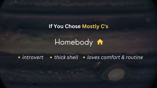 James Webb Teleskobu’nun resmi Twitter hesabı, takipçilerinden en sevdikleri fotoğrafları seçmelerini isteyen bir kişilik testi yaptı. Seçilen resimlere bağlı olarak kullanıcıların bir zaman yolcusu, hayalperest, ev kuşu veya trend belirleyici olabileceği açıklandı.