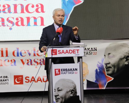 Saadet Partisi İzmir İl Başkanı Mustafa Erduran ise, Erbakan'ın siyaseti şahsi menfaat gözetmeden yaptığını ve bunu kendi camiasına da öğrettiğini vurguladı. Erduran, “Hocamızın en büyük hayallerinden bir tanesi bir araya gelebilen, konuşabilen, anlaşan, uzlaşan bir siyasi oluşumdu. Farklı kanaatlerden, olaylara farklı pencerelerden bakan insanları bir araya getirmekti. Çözüm odaklı idi. Yerli ve milli idi. Siyasette rekabeti kabul eder, ancak siyasi hasımlığı asla kabul etmezdi. Siyaseti hep bir hizmet alanı olarak gördü.” dedi.