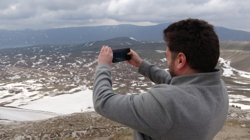 Nemrut Krater Gölü’ne gezmek amaçlı geldiklerini ancak kardan dolayı kapalı olduğunu söyleyen Güler Açıkgöz, “Tatvan ilçesinde bulunan Nemrut Krater Gölü’nü görmeye geldik. Fakat kardan dolayı yol kapalı olduğu için zirvede bulunan tepelerde fotoğraflarımızı çektik. Güzel bir yer herkese tavsiye ederim” dedi.