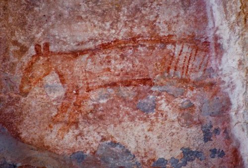 (Kuzey Avustralya, Kakadu Milli Parkı, Aborjinler tarafından çizilmiş kaya resmi.)