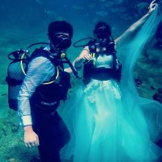 İpek Arkayın Fidan (28) ve Gökhan Fidan (28) 1 yıl evvel tanıştıkları Bodrum su altı batık dalışlarında bu sefer ömür boyu sürecek mutluluklarına imza atmak için daldılar.. Lisanslı dalıcı olan çift deniz dibindeki muhteşem görüntü eşliğinde dünya evine girdiler. Doğal olarak da şahitleri balıklardı. Bu entresan evliliği seçen İstanbullu çifte bizde Medya Ege ailesi olarak ömür boyu mutluluklar diliyoruz.