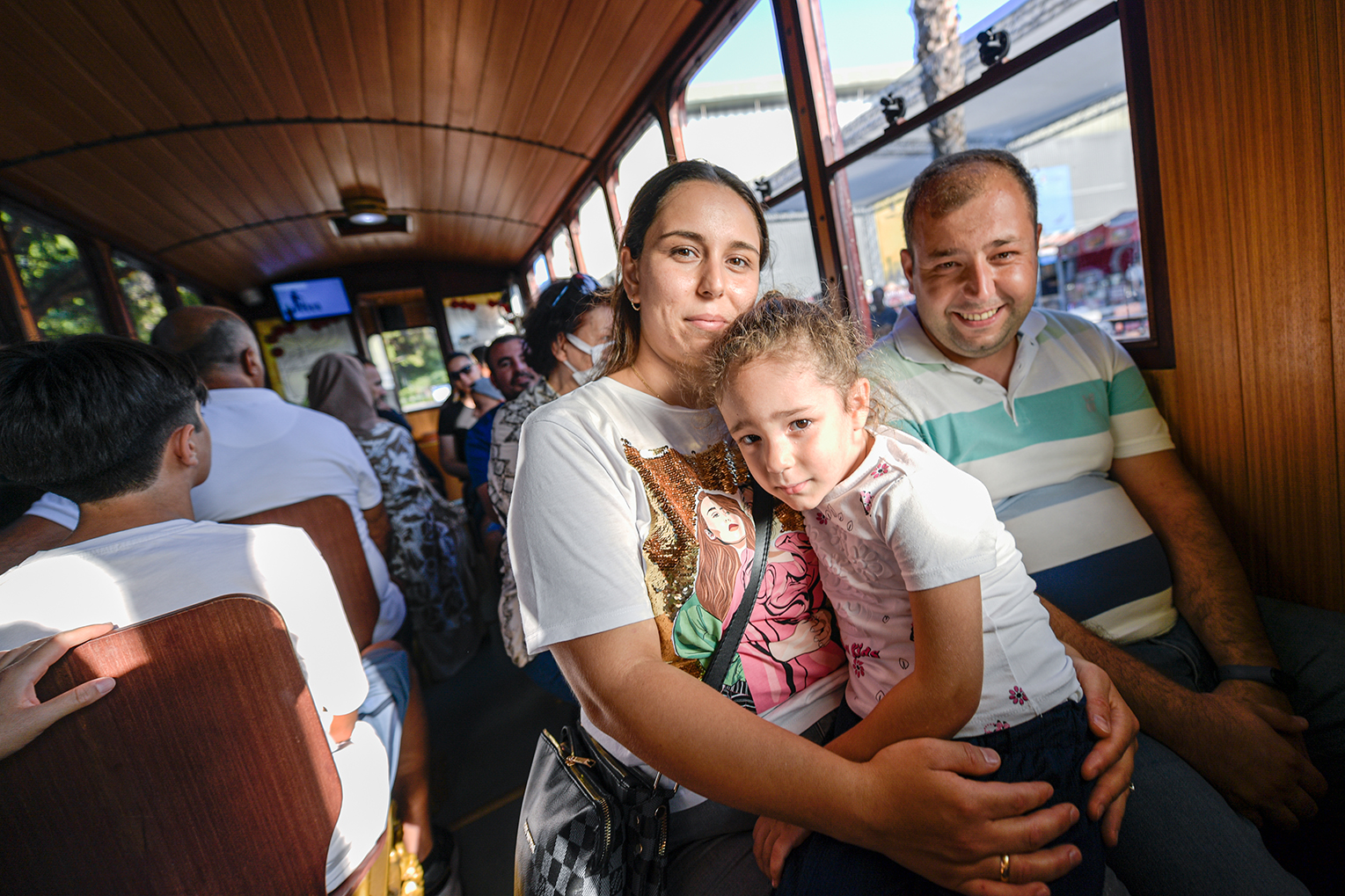 Sabriye – Nihat Bahadır çifti, 4 yaşındaki kızları Nisa’yı, İzmir Fuarı’nın atmosferini yaşaması için Kültürpark’a getirdiklerini söyleyerek, “Nostaljik tramvayların rengini, dizaynını çok sevdik. En güzeli de isimlerinin İzmir ile özdeşleşen Çiğdem ve Boyoz olması. Nostaljik tramvay bizi eskilere, çocukluğumuzun fuarlarına götürdü. Birlikte hatıra fotoğrafı çektirdik. Bu atmosferi kızımızın da yaşaması ayrıca mutlu etti” diye konuştu.