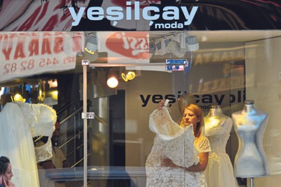 Haciz bildirimi yapılmadan mağazadaki çalışanlar vitrindeki pahalı gelinlikleri topladı, “Bizim değil, yan mağazanın” diyerek dükkandan çıkardı. İcra memuru ve avukatlık bürosu yetkilisi tek tek malları kayıt altına aldı.