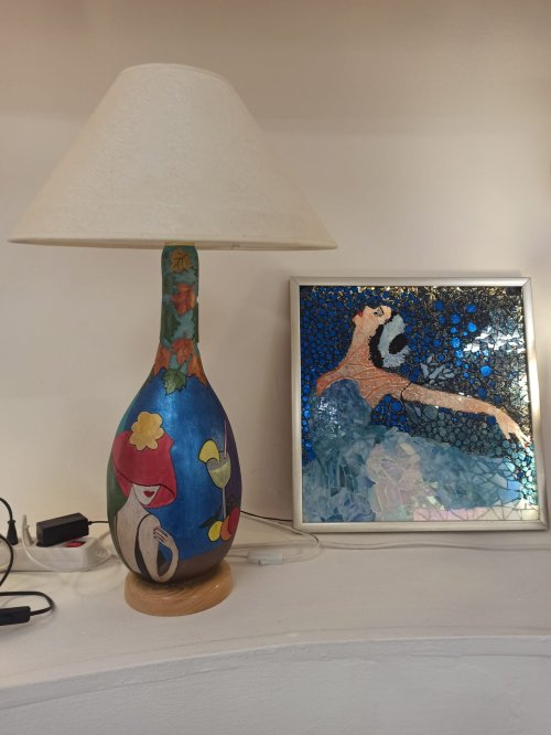 2014 yılında başladığı cam mozaik kaplama ve su kabaklarından aydınlatma objeleri yapan Nursel Sinal'ın ürünleri tamamen el işçiliği.