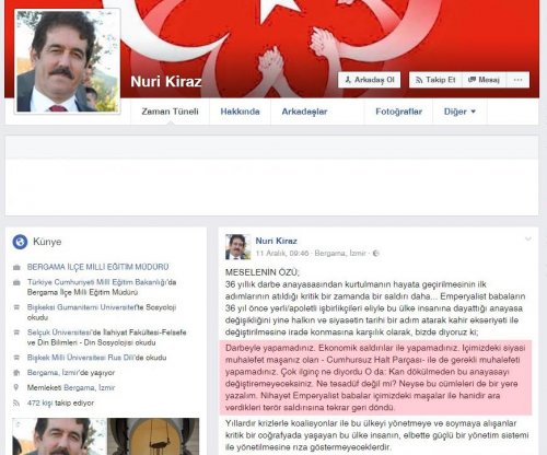 Bergama İlçe Milli Eğitim Müdürü Nuri Kiraz, Facebook sayfasından skandal bir paylaşım yaptı.
