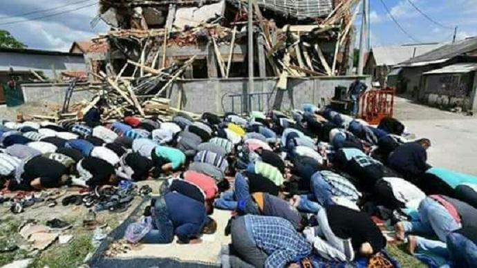 O ülkede Ramazan ayında cami yıktılar; müslümanlar enkazın yanında namaz kıldılar