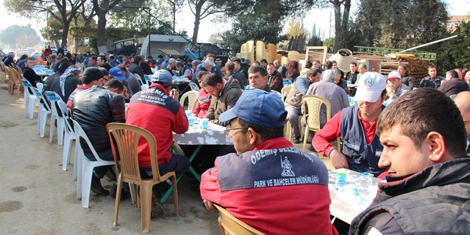 Belediye işçileri Ödemiş'te şehitlere mevlüt okuttu