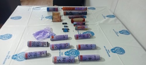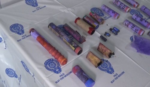 Olaylı derbiden ele geçirilen fişek ve maytaplar sergilendi