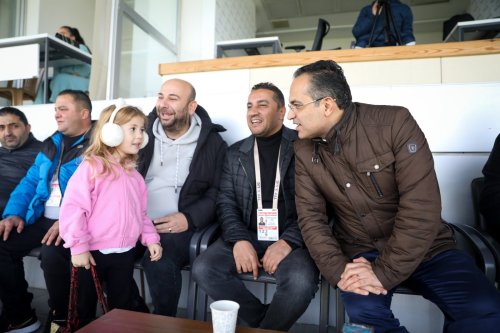 Maçı izlemeye gelen taraftarların ilgisiyle karşılaşan Olgun Atila, "İzmir’in başkanı Olgun Atila" taraftarın alkışlı desteğini aldı.
