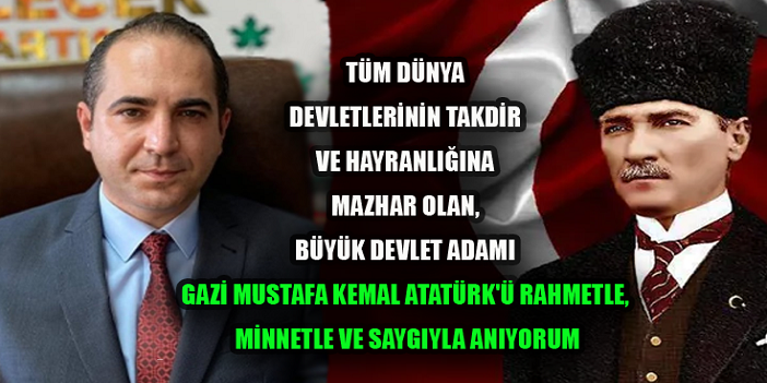 Yayınladığı mesajında Gazi Mustafa Kemal Atatürk’ün eşsiz liderliğine işaret eden il Başkanı Onur Sivaslı, “ Ebediyete intikalinin 83'nci sene-i devriyesinde Cumhuriyetimizin kurucusu, tüm dünya devletlerinin takdir ve hayranlığına mazhar olan, büyük devlet adamı Gazi Mustafa Kemal Atatürk'ü rahmetle, minnetle ve saygıyla anıyorum” dedi.