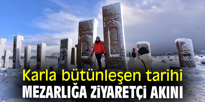 Karla bütünleşen tarihi mezarlığa ziyaretçi akını