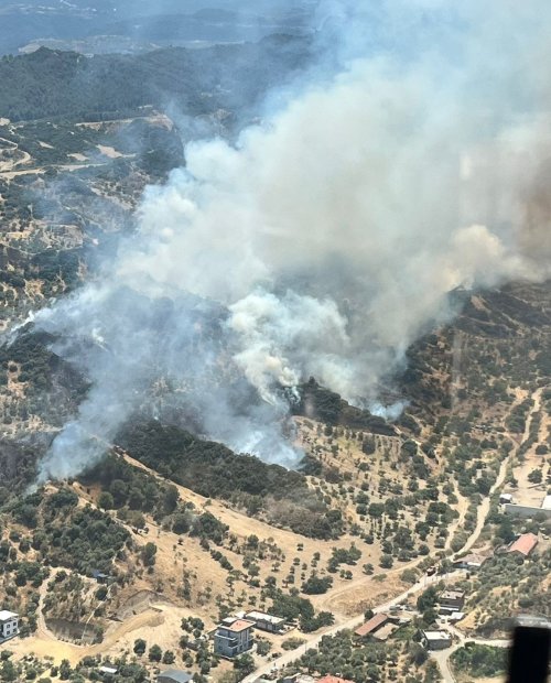 Manisa'nın Turgutlu ilçesinde orman yangını çıktı. Bazı evlerin de alevler içerisinde kaldığı yangına, orman yangın söndürme ve itfaiye ekipleri havadan ve karadan müdahale ediyor.