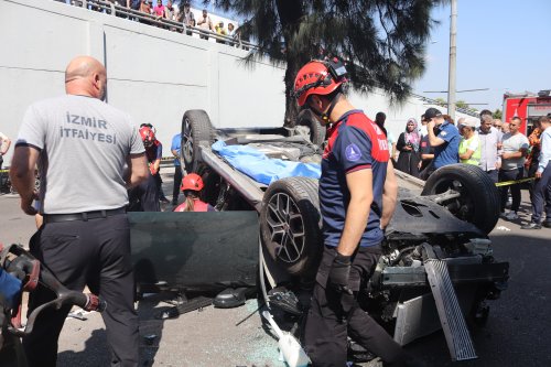 İzmir’de hasta ziyaretine giderken köprülü kavşaktan aşağı düşen araçta bulunan 5 kadından 3’ü öldü 2’si ise ağır yaralandı.