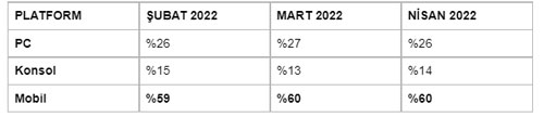 Oyun ve oyun içi satışlarında mart ayına göre %5’lik bir düşüş yaşanırken, 2021 yılının nisan ayına göre %12’lik bir artış görüldü.