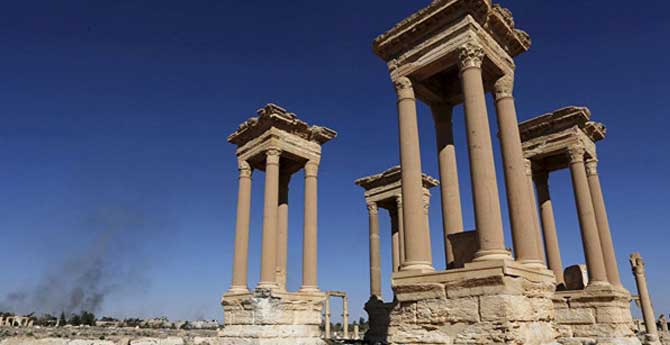 Mayıs 2015'te Palmira kenti IŞİD tarafından işgal edilmiş, yakınındaki kalıntıların bulunduğu ören yeri UNESCO Dünya Mirası listesinde yer alan ve tarihi 4000 yıl öncesine kadar giden antik kentin belli bölümlerini kasıtlı olarak yıkıp yok etmişti. Teröristler kentteki tarihi Zafer Takı, Baalshamin Tapınağı ve Bel Tapınağı'nı yıkarak çeşitli eserleri yağmalamıştı.