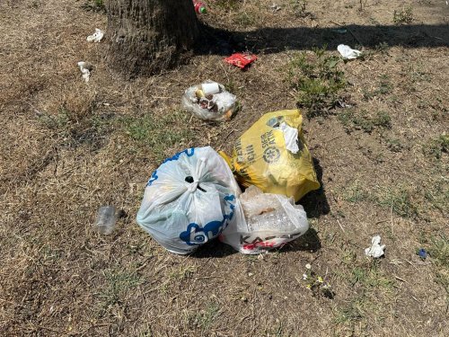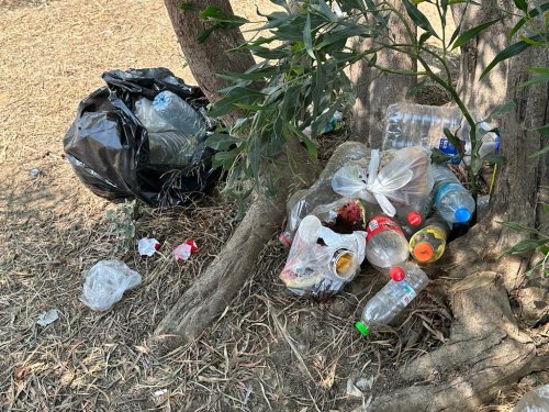 Pamucak Sahilinin girişinde bulunan yeşillik alan, bayram tatilini sahilde geçiren vatandaşların bıraktığı çöpler nedeniyle çevre kirliliği yaratıyor.