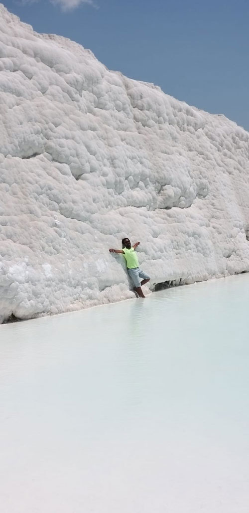 Dünyada eşi benzeri olmayan, Su ve İnancın başkentidir Pamukkale. Tarih boyunca bir çok depreme uğramış ve şimdiki halini almıştır. Travertenleri görmek için iki ana kapıdan giriş yapıyorsunuz. Tabiî ki içeride giriş yaptığınız zaman ayakkabılarınızı çıkartmanız gerekecek. Bunun sebebi ise doğal zeminin korunmasını sağlamak. İnsan zaten bu kayaçlara basmak ve o duyguyu hissetmek istiyor.