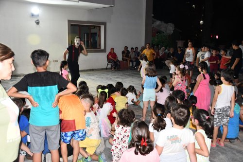 Mahalle mahalle çocuklarla buluşan oyun, çocuklara keyifli bir yaz akşamı yaşatıyor.