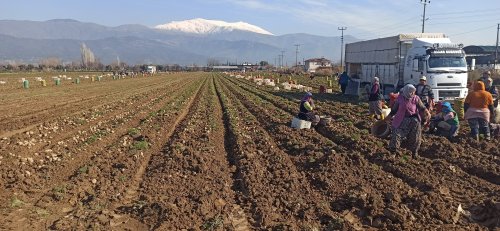 Ödemiş’te havaların soğuk olması sebebiyle ara verilen kış patatesinde hasat çalışmaları yeniden başladı.