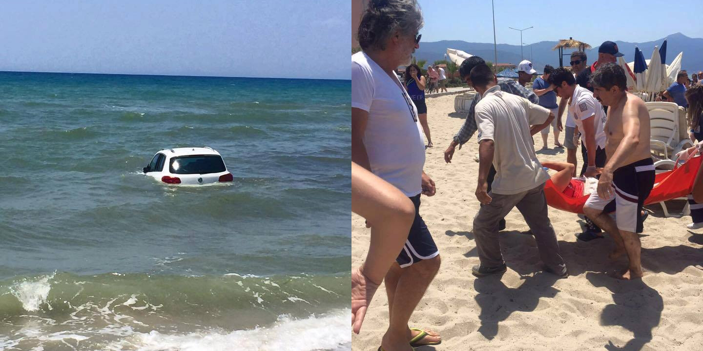 Yok artık! Denizde yüzen insanlara araba çarptı!