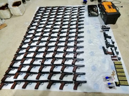 Öte yandan adreslerde yapılan aramalarda ise, 120 adet çevirmeye hazır kuru sıkı tabanca, 188 şarjör, 3 ruhsatsız tabanca, 359 fişek, 99 silah parçası, 1 adet hidrolik pres makinesi, 1 dramel makinesi, 6 matkap ve silah imalatında kullanılan çok sayıda malzeme ele geçirildi.