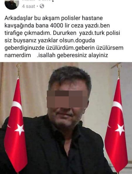 Hastane kavşağında trafik polisleri tarafından kendisine ceza 4 bin TL kesildiğini söyleyerek sosyal medya hesabı üzerinden trafik polisleri hakkında ağır sözler sarf eden Kadir Güneş yaptığı paylaşımında ‘Arkadaşlar, bugün polisler hastane kavşağında bana 4 bin TL ceza yazdı. Ben trafiğe çıkmadım. Dururken yazdı. Türk polisi siz buysanız, yazıklar olsun. Doğuda geberdiğinizde üzülürdüm. Geberin, üzülürsem namerdim. İnşallah geberirsiniz alayınız’ ifadelerini kullandı. Sosyal medyada paylaşılan yazılar üzerine harekete geçen Alanya İlçe Müdürlüğü Asayiş Büro Amirliği ekipleri muhtar Güneş’i gözaltına aldı. Gözaltına alınan muhtar emniyetteki işlemlerinin ardından adliyeye sevk edildi.