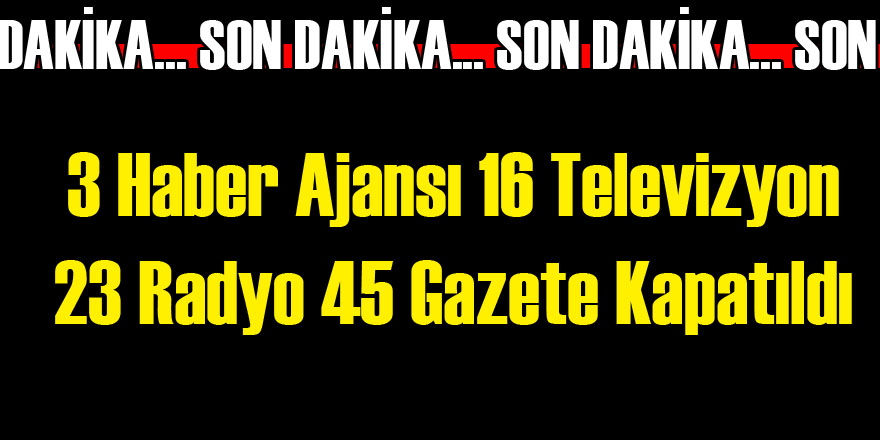 3 Haber Ajansı 16 Kanal, 23 Radyo 45 Gazete Kapatıldı!