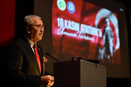 Törenin açılışında konuşan Ege Üniversitesi Rektörü Prof. Dr. Necdet Budak, “Kurtuluş Savaşımızın Başkomutanı, Cumhuriyetimizin kurucusu, ilk Cumhurbaşkanımız Büyük Önder Mustafa Kemal Atatürk’ü, vefatının 83. yılında; bizlere miras bıraktığı bütün değerler için saygı ve minnetle yâd ediyorum. Gazi Mustafa Kemal Atatürk’ün hayatı boyunca imza attığı nice zaferlerin, vatan sevgisiyle yürüttüğü mücadelelerin ve bu mücadeleler neticesinde şanlı ulusumuza bıraktığı fikri mirasın doğru anlaşılması bakımından 10 Kasımların anlamı büyüktür. Bu nedenle bugün, ulusumuz için yalnızca bir matem günü olmanın ötesinde; bizlere emanet edilen mirasın değerini bir kez daha anlama ve onu daha ileri taşıma kararlılığımızı ortaya koyma günüdür. Bizler de, Atamızın ve silah arkadaşlarının hatırası önünde saygı ve minnetle eğildiğimiz bugün; onu ve fikirlerini tekrar anlamak, anlatmak üzere bir arada bulunuyoruz” dedi.