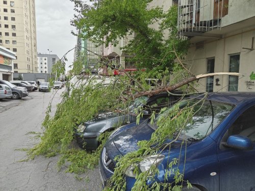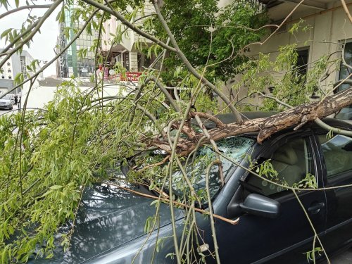 Kayseri’de rüzgardan dolayı kırılan ağaç dalı, park halindeki otomobillerin üzerine düştü.