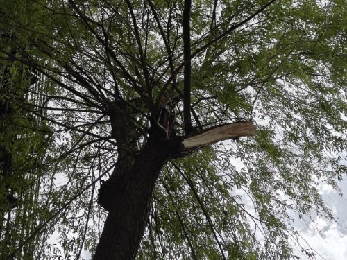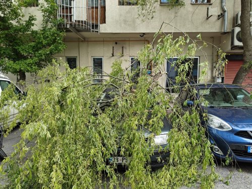 Rüzgarda kırılan ağaç dalı araçların üzerine düştü