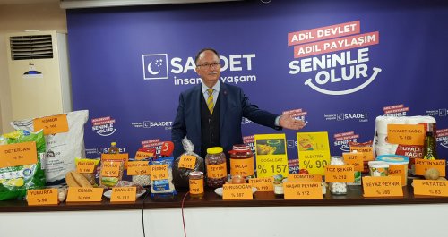 Temel maddelerdeki fiyat artışının yüzde 133 dolaylarında olduğunu ve yüzde 64,27 olarak açıklanan resmi enflasyon oranının gerçeği yansıtmadığını savunan Saadet Partisi Genel Başkan Yardımcısı Şerafettin Kılıç, iddiasını ispatlamak için ilginç bir yöntem uyguladı. Kullanımı zorunlu temel tüketim maddelerini tek tek sergileyen Kılıç, gerçek fiyat artışlarını bu ürünler üzerinden ortaya koydu.