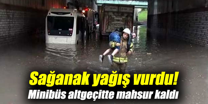 Sağanak yağış vurdu! Minibüs altgeçitte mahsur kaldı