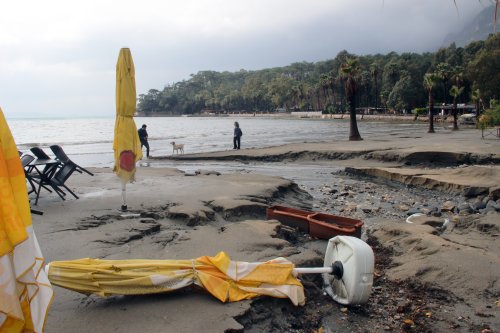 İki yıl önce de aşırı yağış sonrası sahil kumları denize sürüklenmesi sonucu Ula Belediyesi tarafından sahilde düzenleme yapılmıştı. Yağmur sularının taşkına neden olması sonucu sahilde yine hasar oluştu.