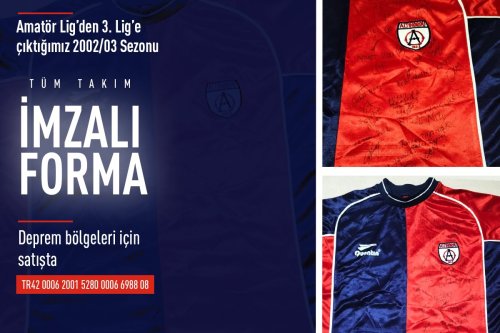 Altınordumuzun alt yapısından yetiştikten sonra A Takımımıza yükselen eski oyuncularımızdan Erman Tügezim, 3. Lig’e yükselmiş olduğumuz imzalı formayı depremzedelerin yararına koleksiyonundan Sait Altınordu Tesislerimize iletti. Eski oyuncumuzun talebi doğrultusunda imzalı şampiyonluk formamız 15 bin TL’den satışa sunuldu. İmzalı 3. Lig şampiyonluk formamızı almak isteyen ilk yardımseverin, TR42 0006 2001 5280 0006 6988 08 nolu IBAN hesabına ücreti yatırması gerekmektedir. Yardım ücretini yatıran kişi veya kurum temsilcisi; imzalı Amatör Lig'den 3. Lig'e yükseldiğimiz sezon şampiyonluk formamızı Sait Altınordu Tesislerimizden bizzat alabilecek veya kargo ile yardımsever kişinin adresine göndereceğiz” denildi.