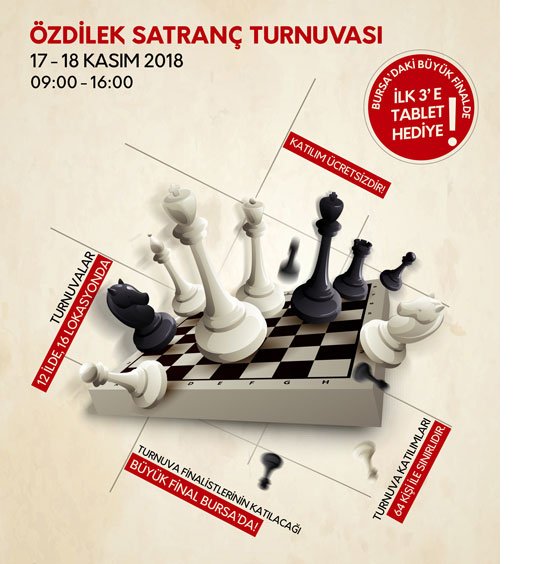 Son yıllarda çocukların ve gençlerin beyin gelişimi için taşıdığı önem sebebiyle birçok kurum ve kuruluşça desteklenen satranç, sosyal sorumluluk projelerinde de öne çıkıyor. Bu kapsamda Türkiye Satranç Federasyonu (TSF) ve Özdilek’in iş birliği ile hazırlanan turnuvanın ön elemeleri 17 – 18 Kasım’da gerçekleşecek.