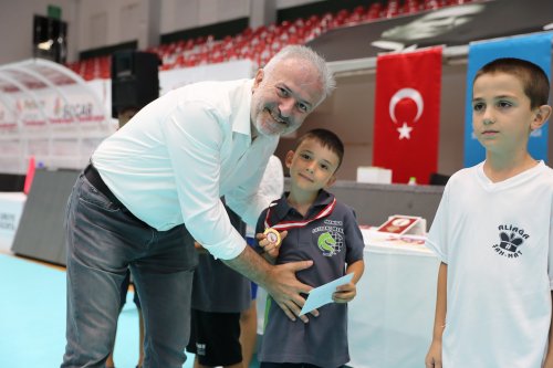 Turnuvada dereceye giren sporculara ödül ve madalyalarını Aliağa Belediye Başkan Yardımcısı Hakan Şimşek takdim etti.