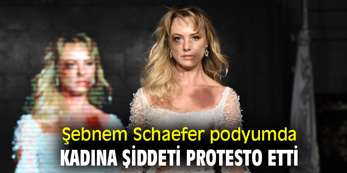 Şebnem Schaefer podyumda kadına şiddeti protesto etti.